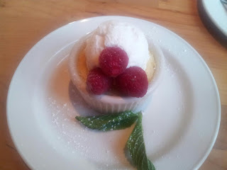 Mini Lemon Soufflé Cake: with fresh raspberries and house made whipped cream 3.95 (非常非常非常非常非常酸!)