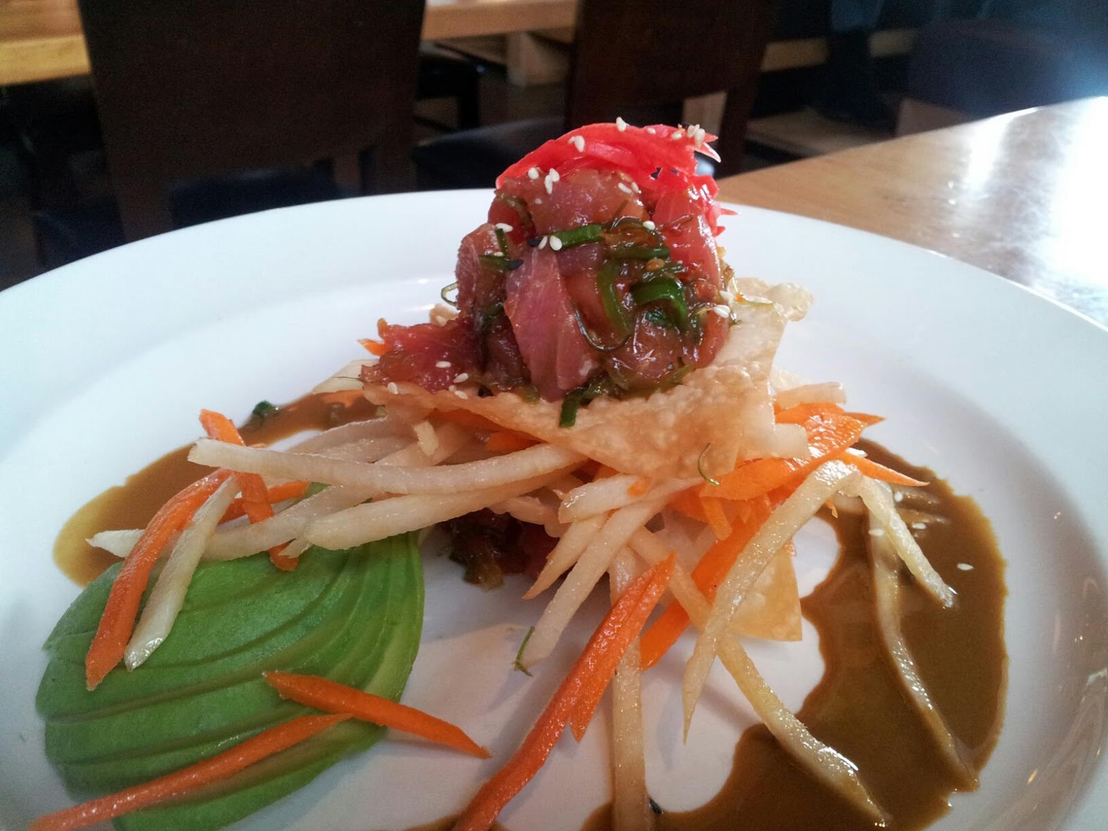 這款其實跟剛剛半熟生魚片差不多, 只是這款比較好吃, 比較細, 而且還加了很多蔬果在旁邊拌著吃. 我以後應該只會點這個, 而不點Seared ahi SaShimi.