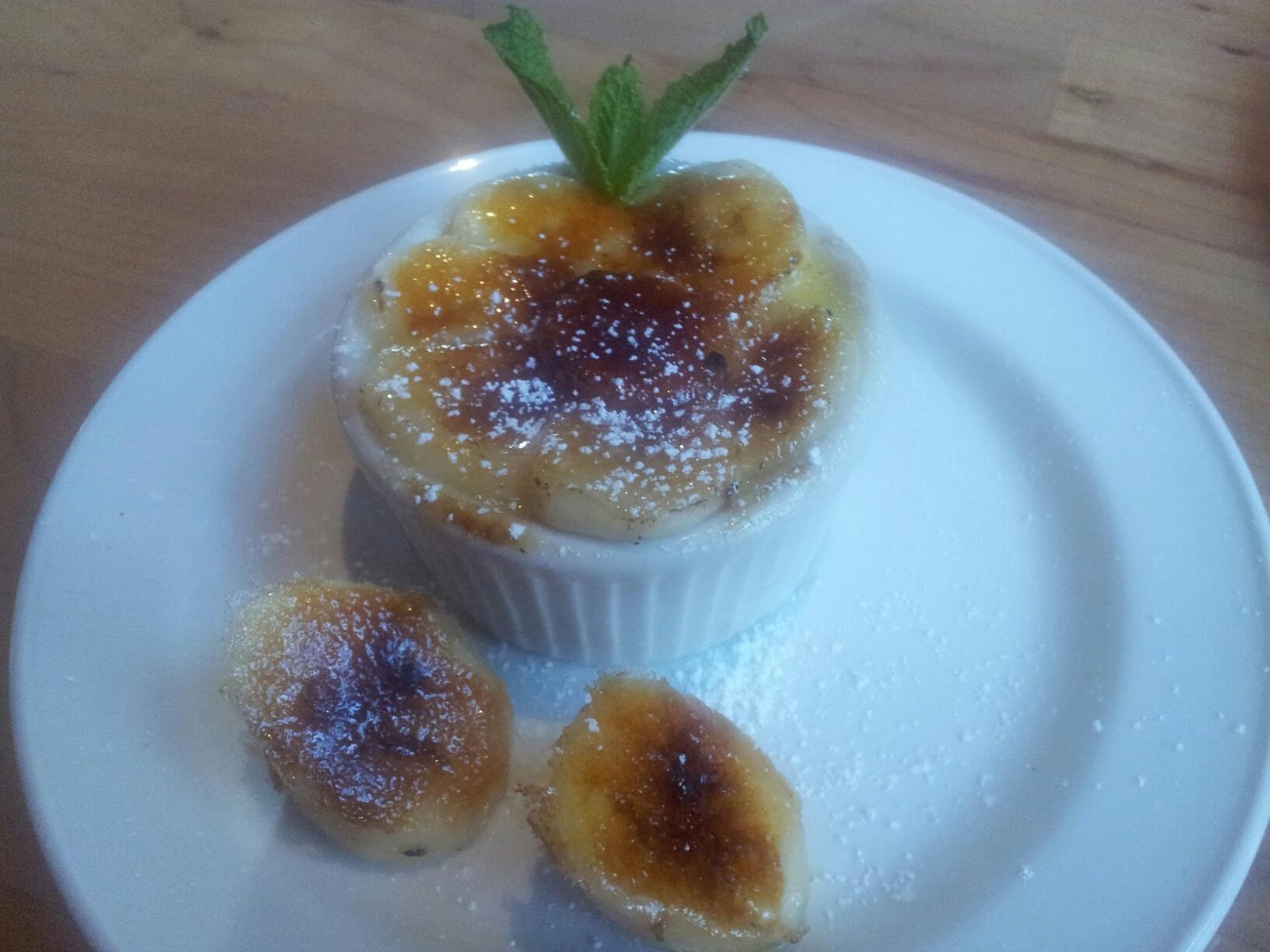 Mini Crème Brulee: with vanilla bean custard and chocolate topped with caramelized bananas 4.25 非常的水, 里面的cream 都是水水的, and 不太好吃)