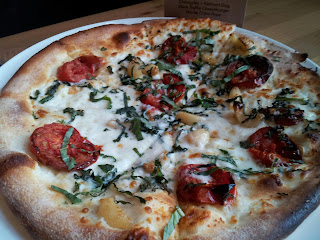 Margherita : roasted roma tomatoes, roasted garlic, mozzarella & fresh basil (因為是HH (Happy Hour), 所以是半價.) 這是我最愛的PIZZA 之一, 因為加了我最沒辦法抗拒的garlic and basil…一整個就是香, 而且因為我們點了太多肉類, 這款PIZZA 剛好都沒有肉, 超級配! 而且烤過的tomatoes, garlic and basil 香香的, 好好吃哦.