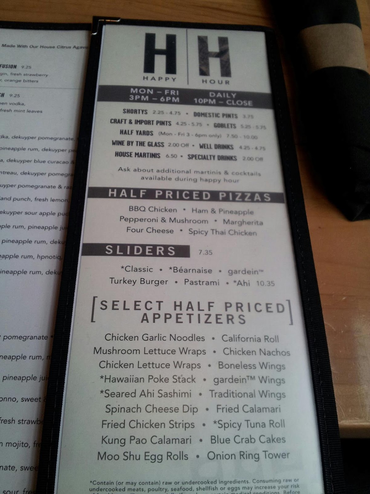 他們的Happy Hour Menu 價錢非常簡單,就是所包含在MENU內的才在HH時間內都是半價.菜色內容也很豐富.